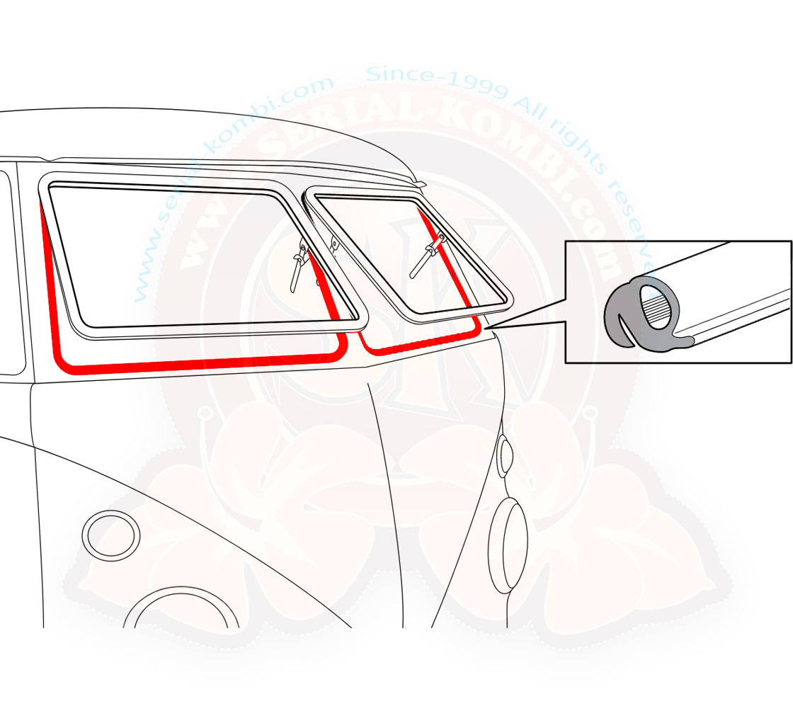 Guarnizioni per vetri safari su carrozzeria 3/1955-7/1967 forma originale, la coppia