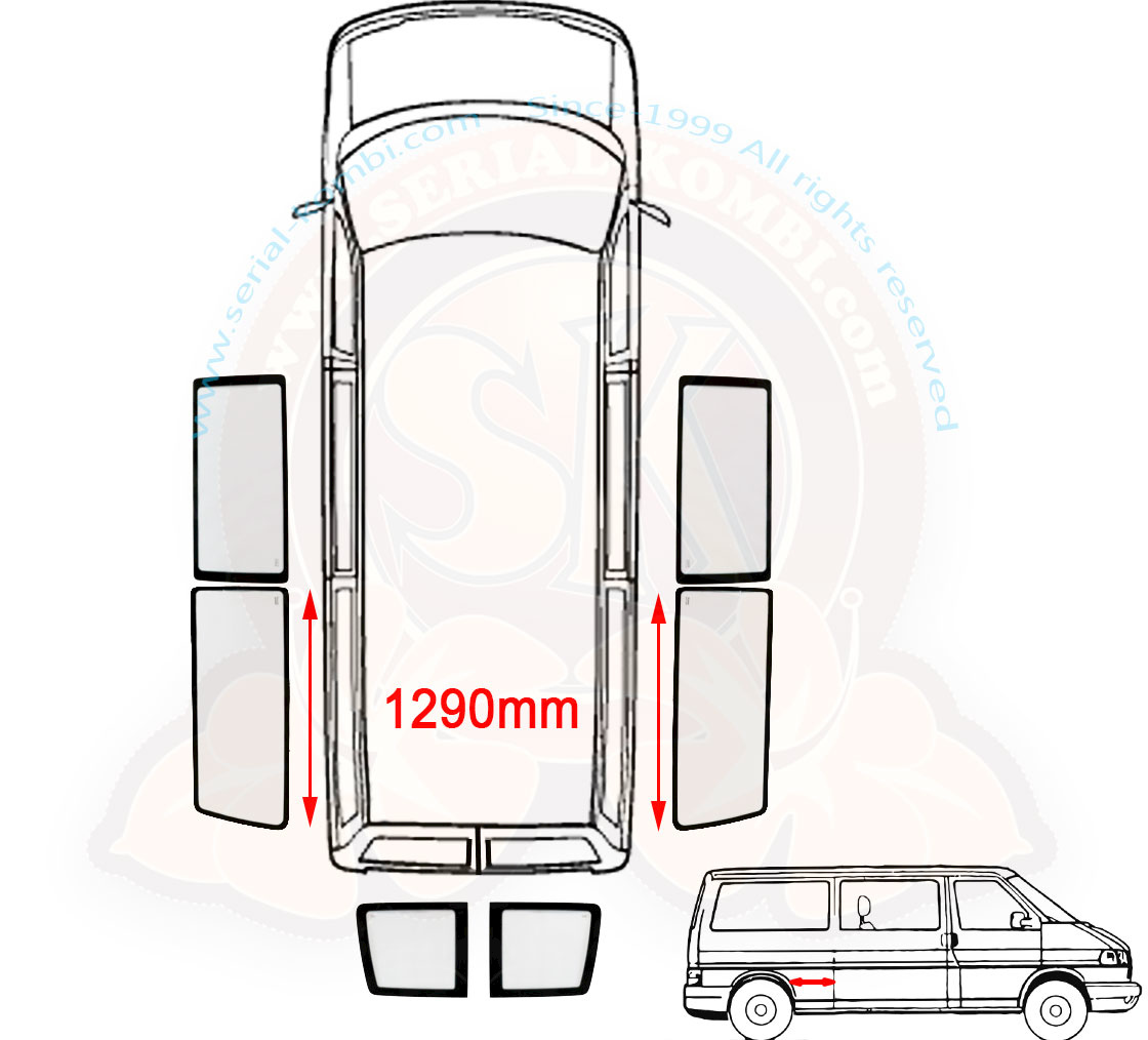 Kit 6 vetri trasparenti per modello furgonato o vetrato T4 9/1990-6/2003 Passo Lungo con 2 porte posteriori a battente