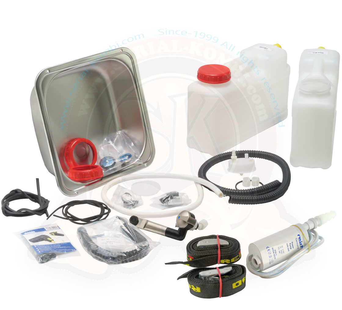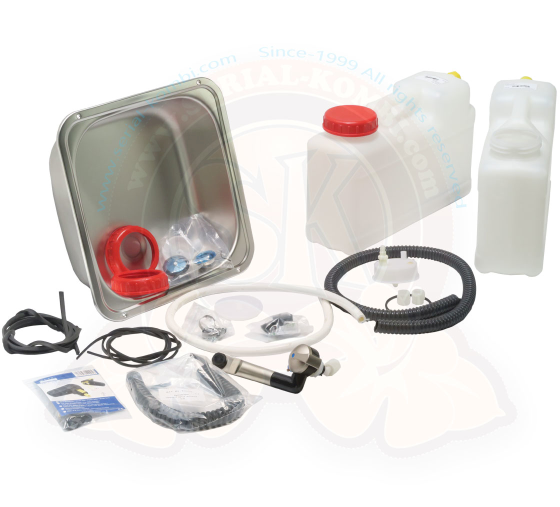 – Kit di installazione di una rete idrica semplice con serbatoi da 2 x 12 litri, lavandino e rubinetto