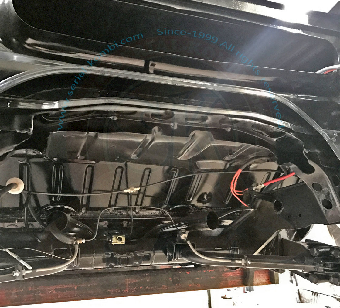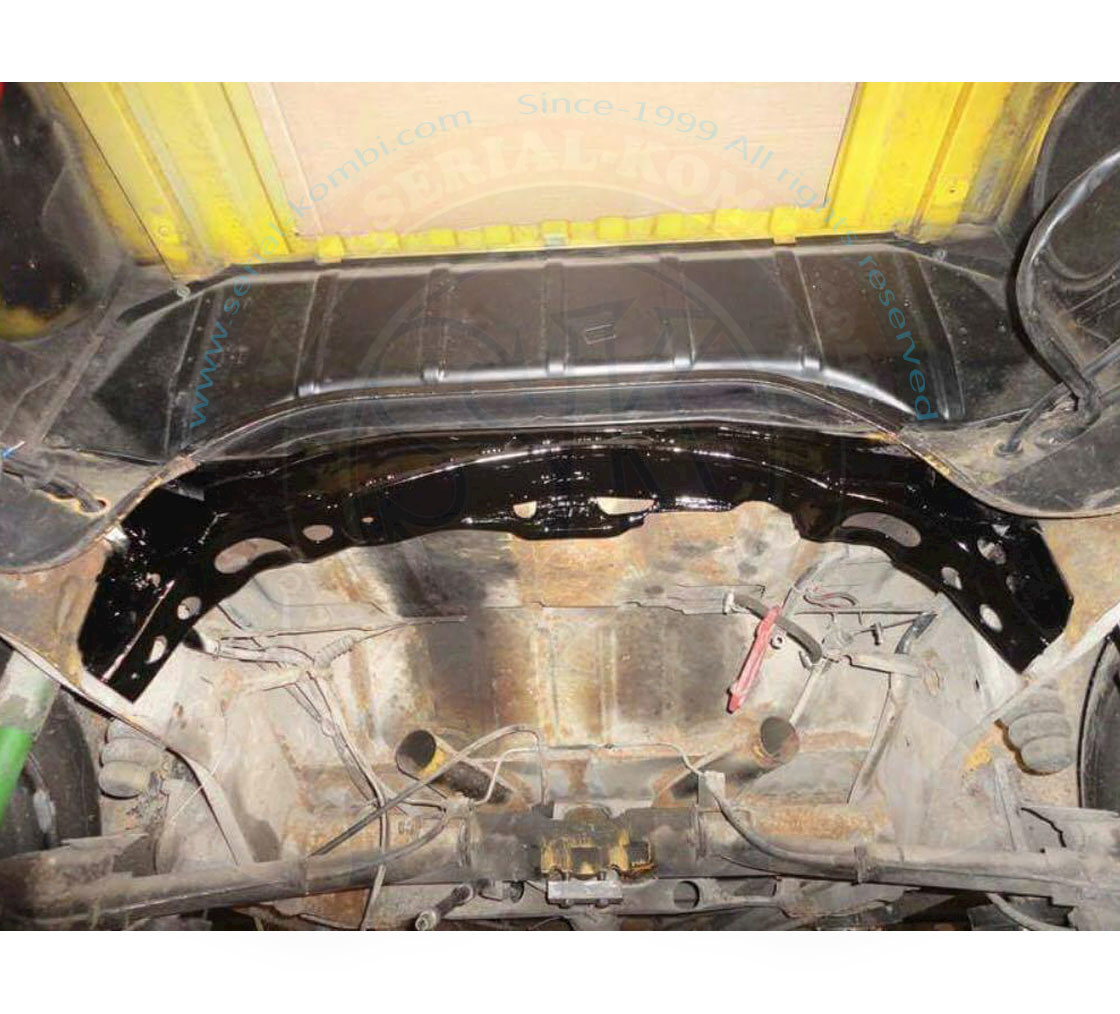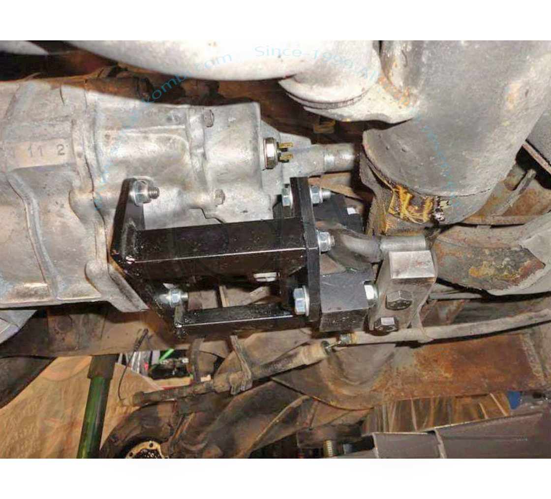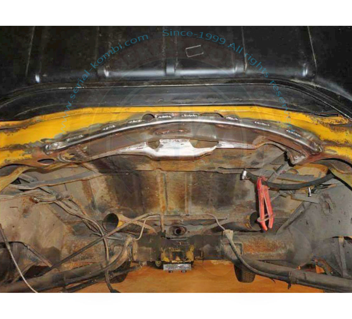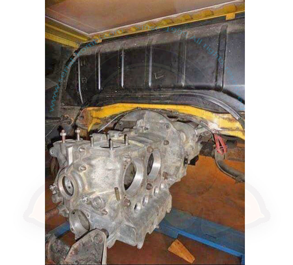 Per i bus 8/1971-7/1979 tutta la parte dove il supporto superiore della campana della frizione è imbullonata al telaio va tolta, di conseguenza il cambio non sarà più autoportante, come sui bus 8/1967-7/1971.