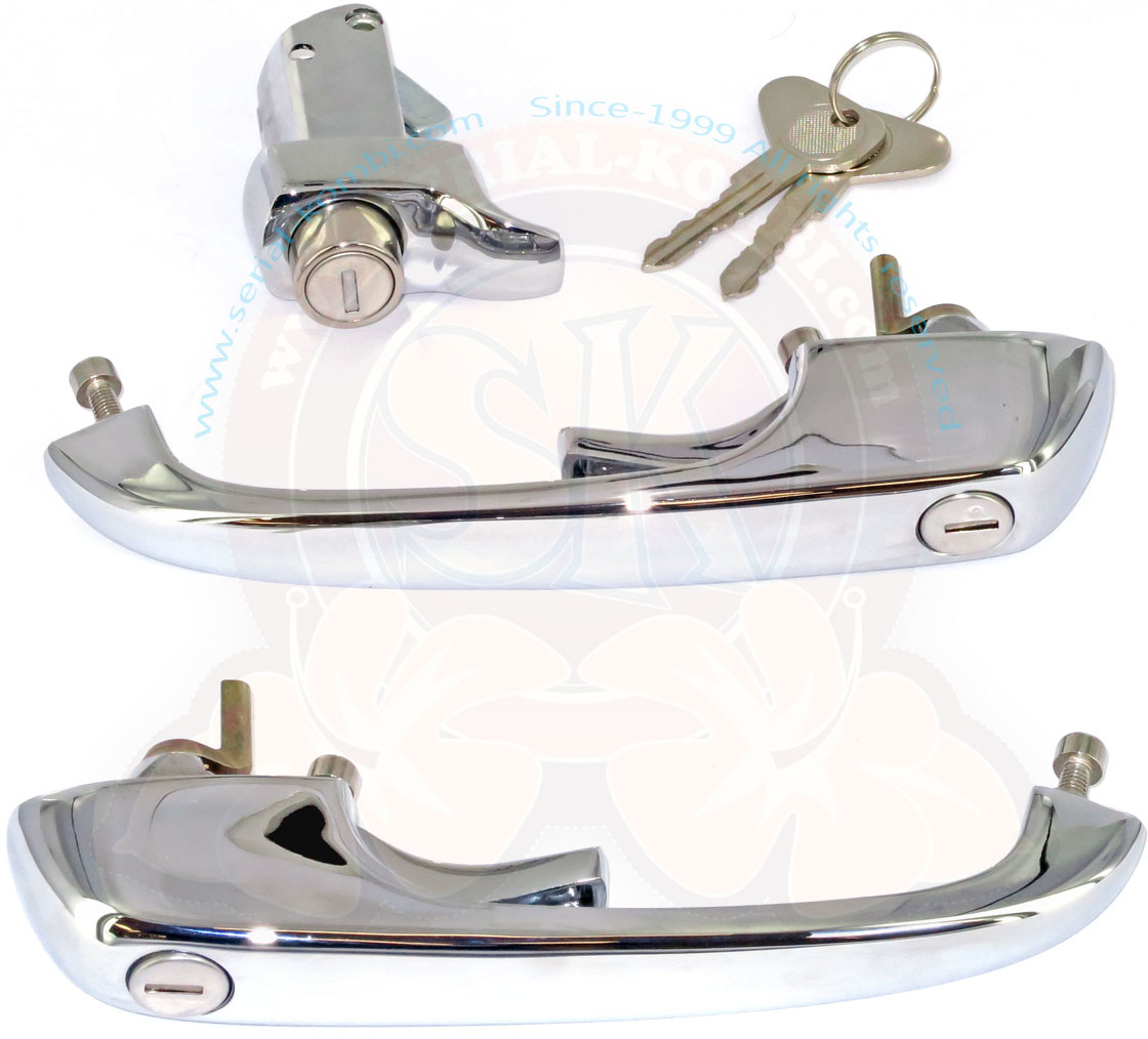 Kit maniglie esterne porte anteriori, cofano motore, con 2 chiavi identiche pick-up 8/1971-7/1979