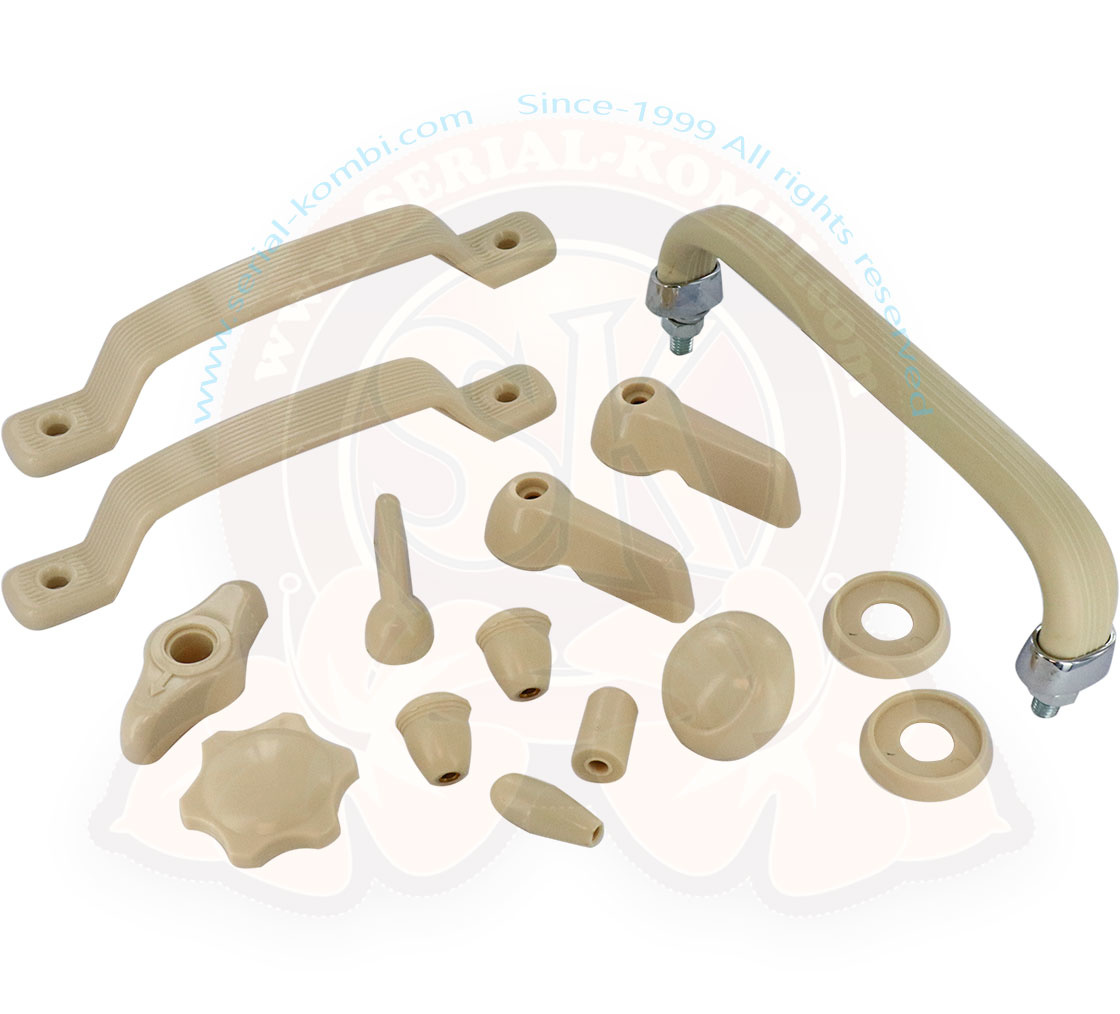 Kit maniglie, leve e pomelli interni in plastica, colore avorio 8/1966-7/1967