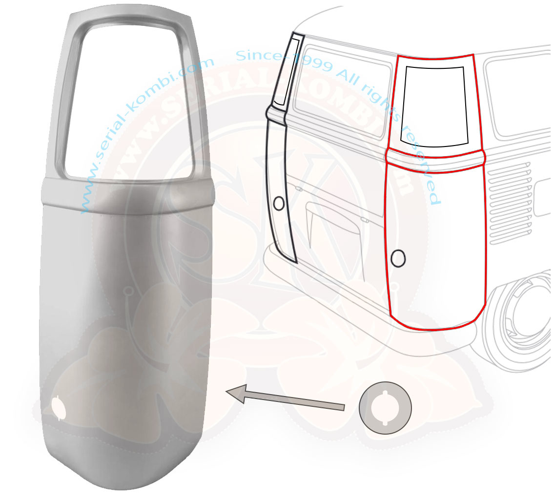 Lamierato angolo posteriore destro completo fino al gocciolatoio Deluxe / Samba 1/1959-7/1961 15 / 23 vetri