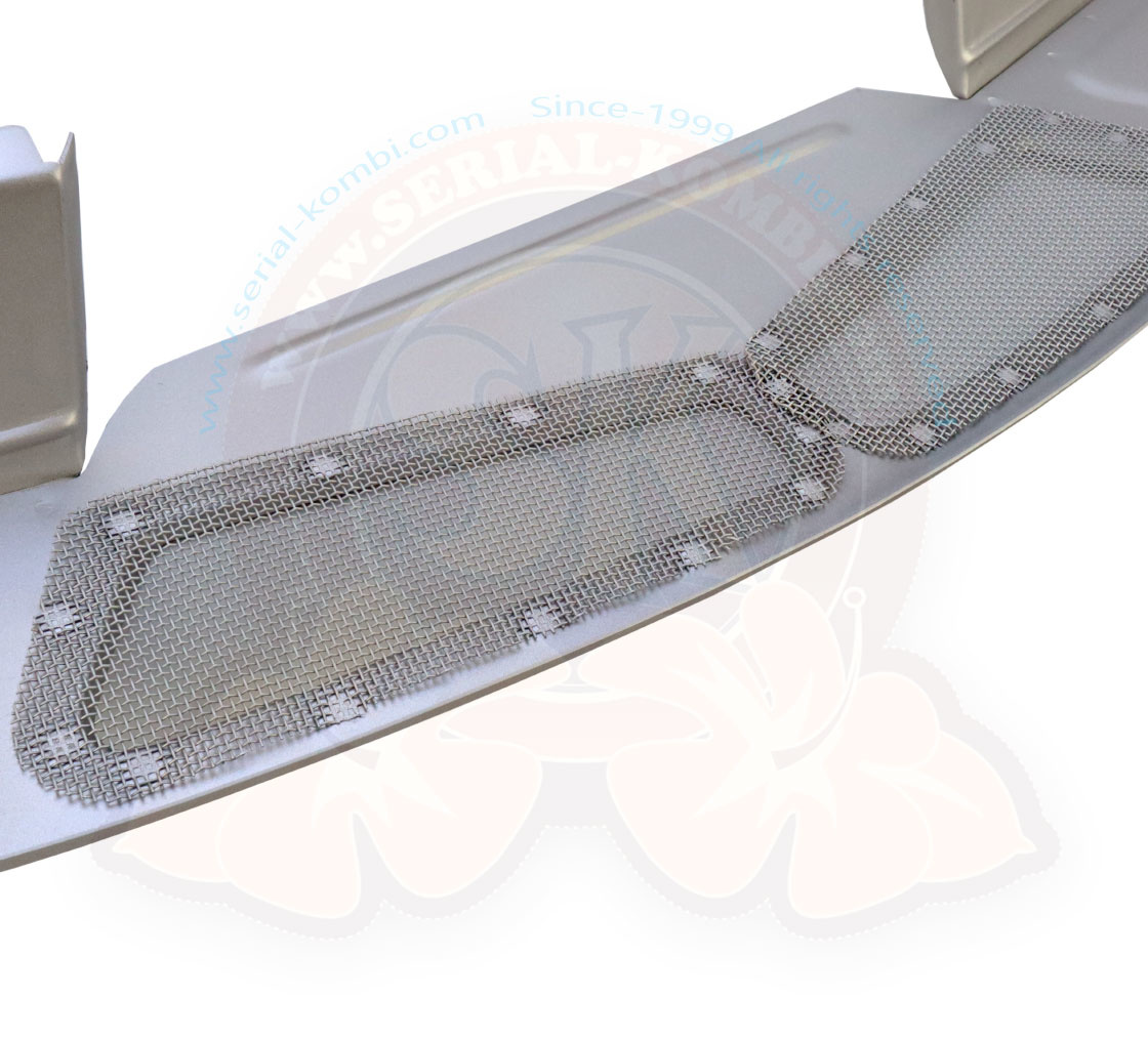 Lamierato completo parte in aggetto sotto tetto sopra parabrezza, con gocciolatoio, fori e griglia metallica presa aria ventilazione 8/1963-7/1967