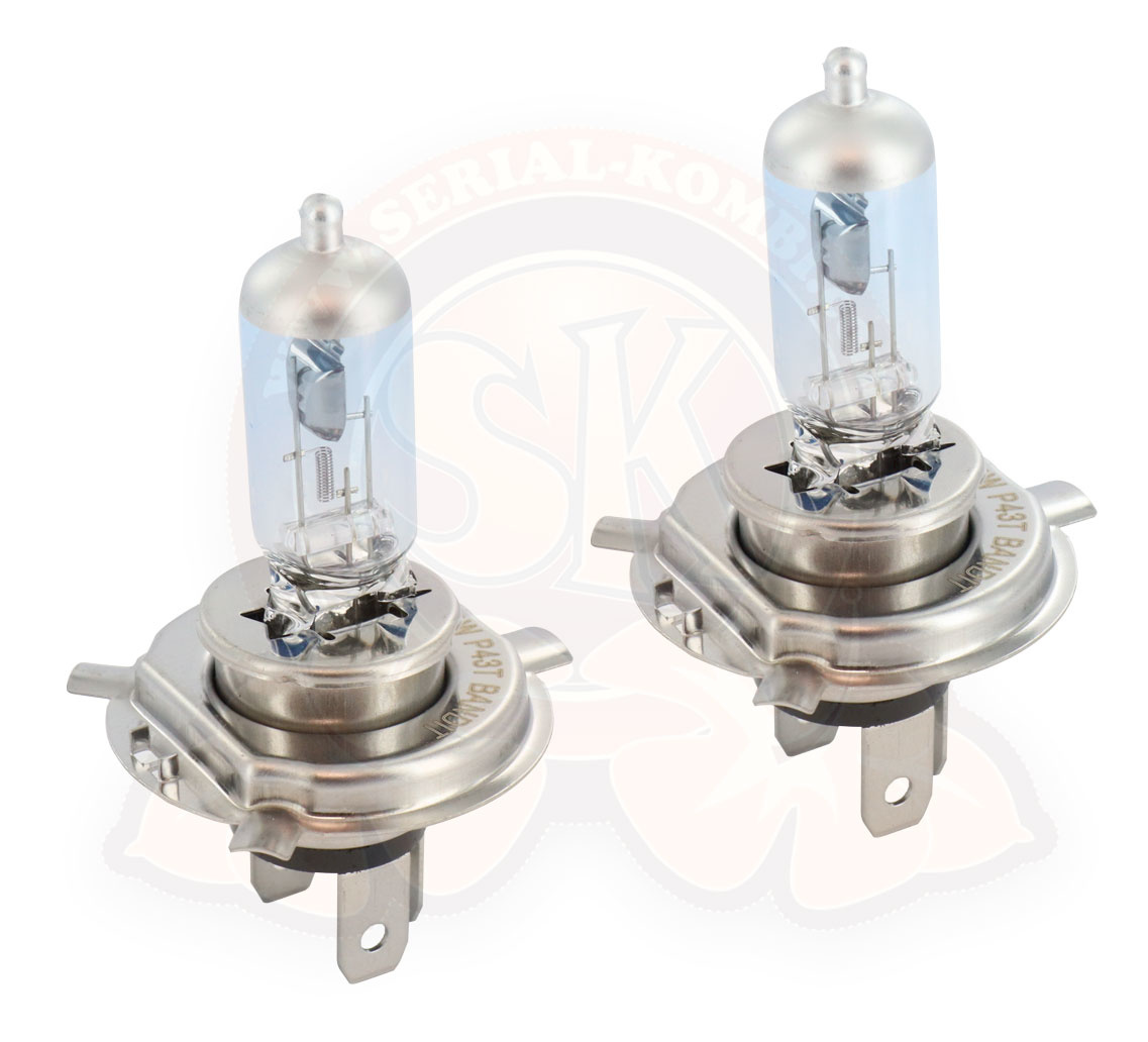 Lampadine per faro H4 alogena blu 12 volt 55/60W, 4200K equivalenti a 80/90W (set di 2)