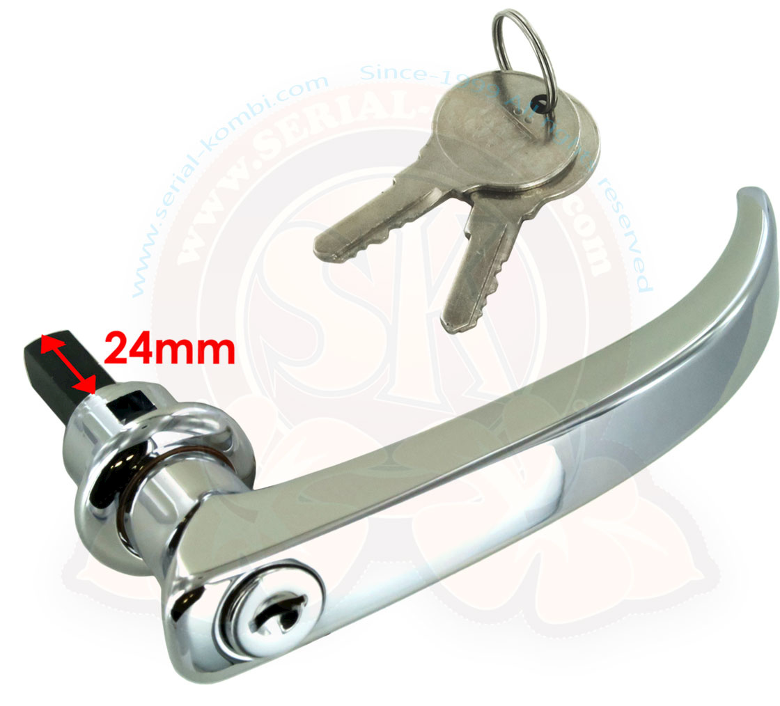 Maniglia esterna cromata lunga per porta laterale, con perno corto per panel senza maniglia interna 8/1958-7/1967 con anello e 2 chiavi