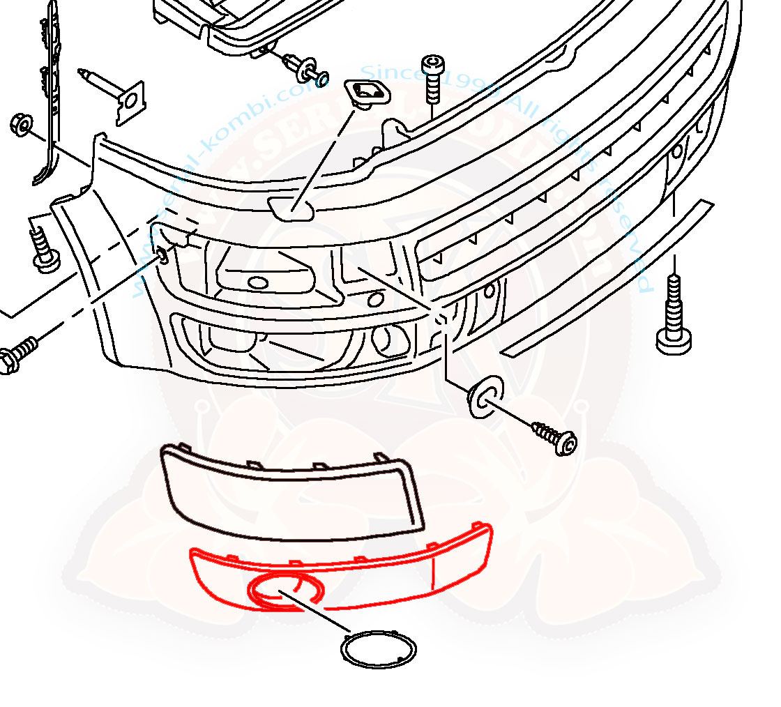Mostrina in plastica liscia con foro per fendinebbia su paraurti anteriore T5 12/2009-8/2015 da verniciare – Destra