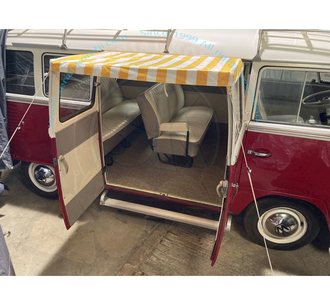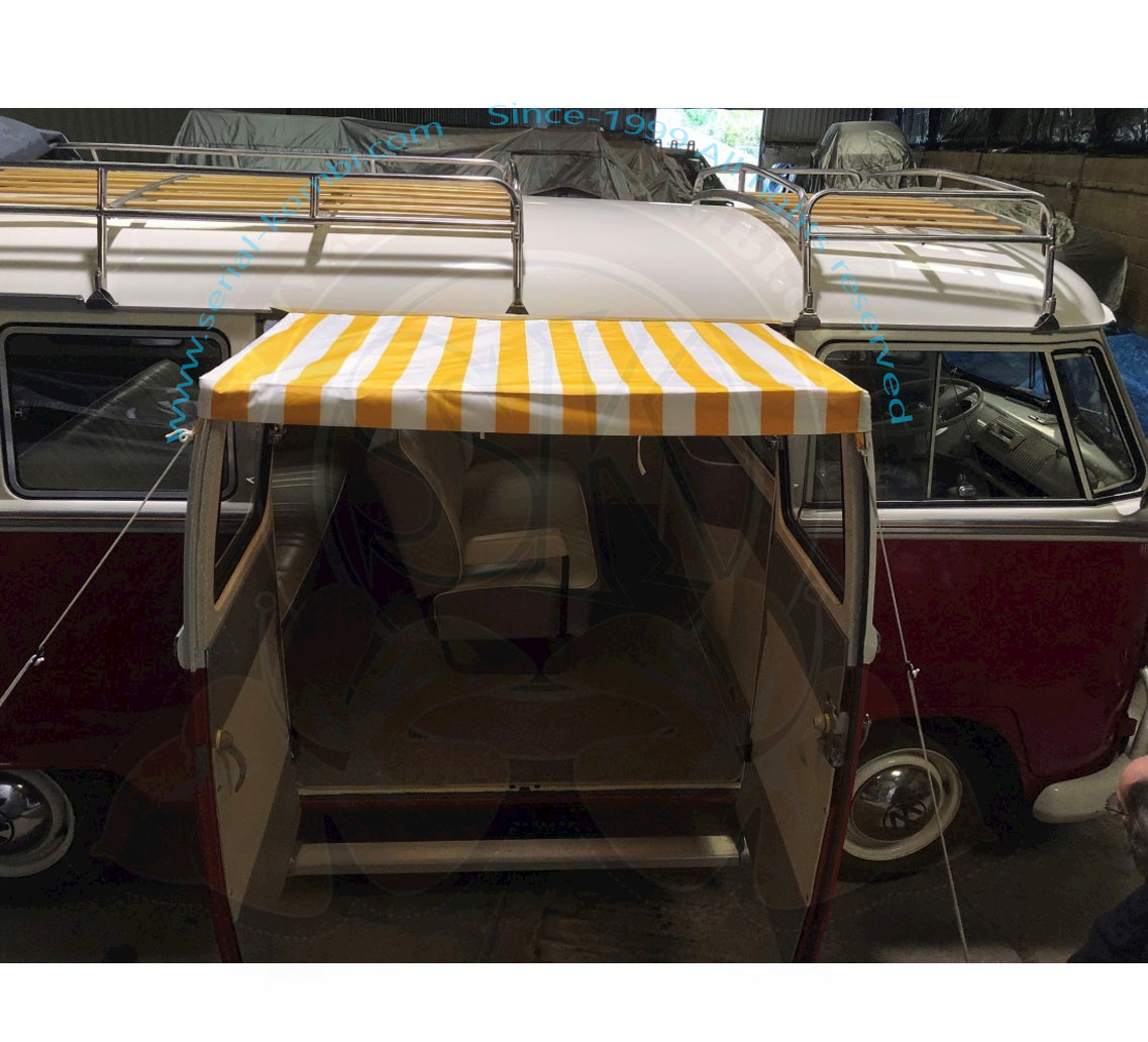 Un parasole a righe dal look vintage per le porte del vano carico del tuo Bus Split.