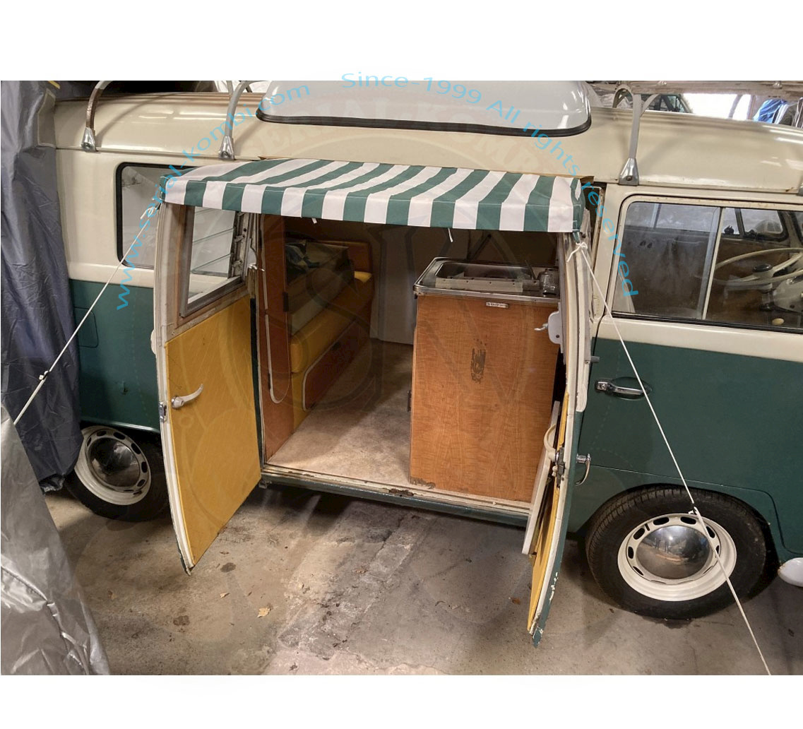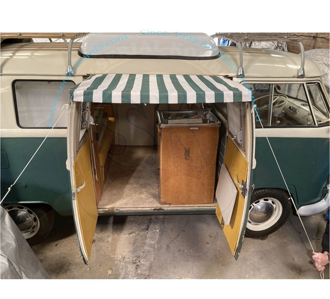 Un parasole a righe dal look vintage per le porte del vano carico del tuo Bus Split.