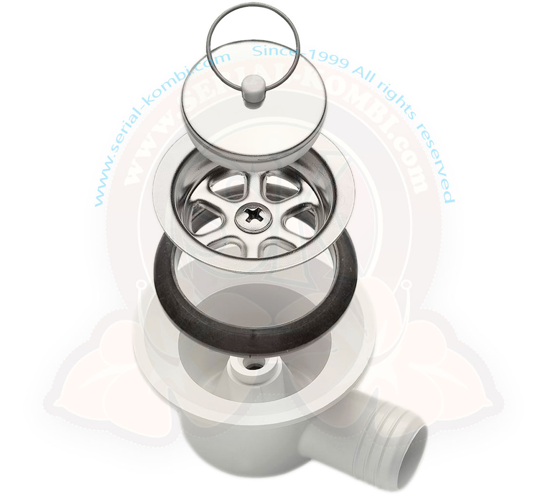Piletta di scarico lavello angolata con tappo inox e sifone, filettatura Ø 37mm per tubo Ø 20mm, per