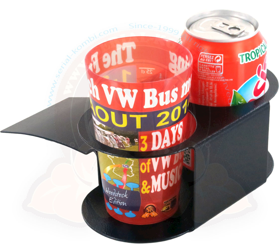 Porta-lattine / bevande in metallo verniciato epossidico nero, va fra il posacenere e il cruscotto senza bisogno di viti o fori T4 9/1990-12/1995