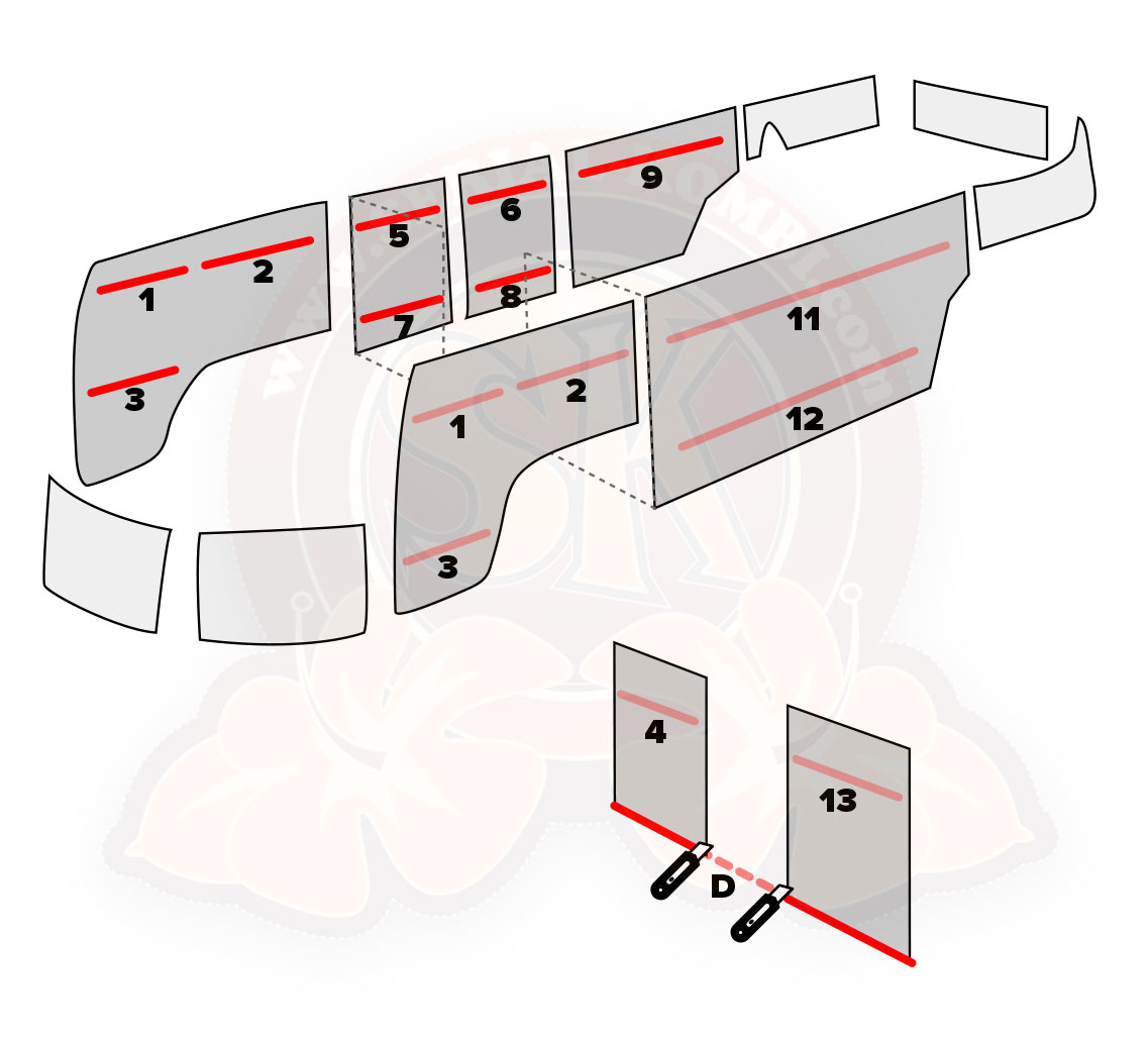Include tutte le modanature dei pannelli porte, dei pannelli divisori, modanature inferiori dei pannelli divisori e clip di montaggio.