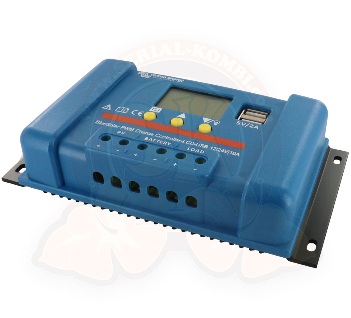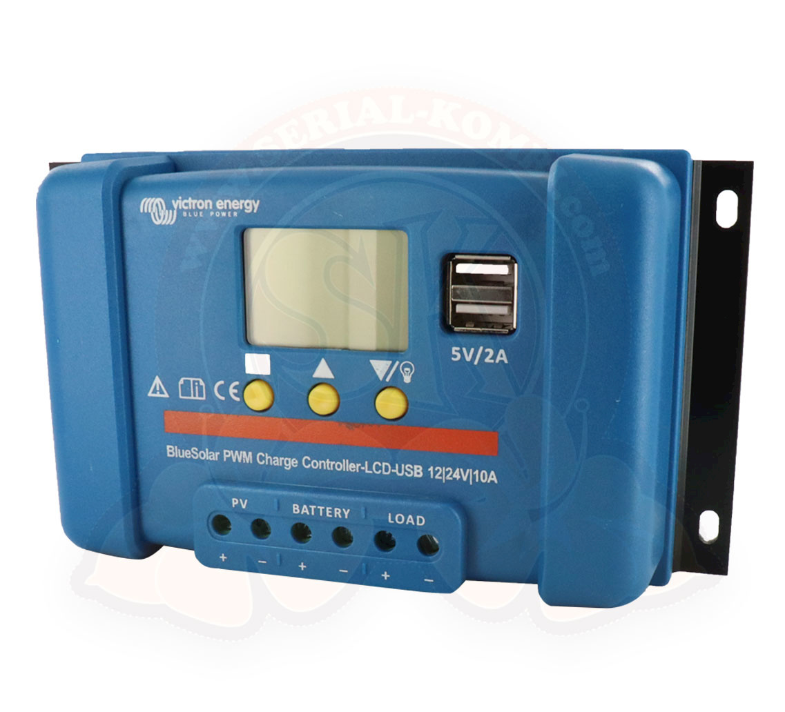 Regolatore di carica solare BlueSolar PWM 12/24V-10A, schermo LCD e 2 prese USB 5V, max. 2A Victron Energy