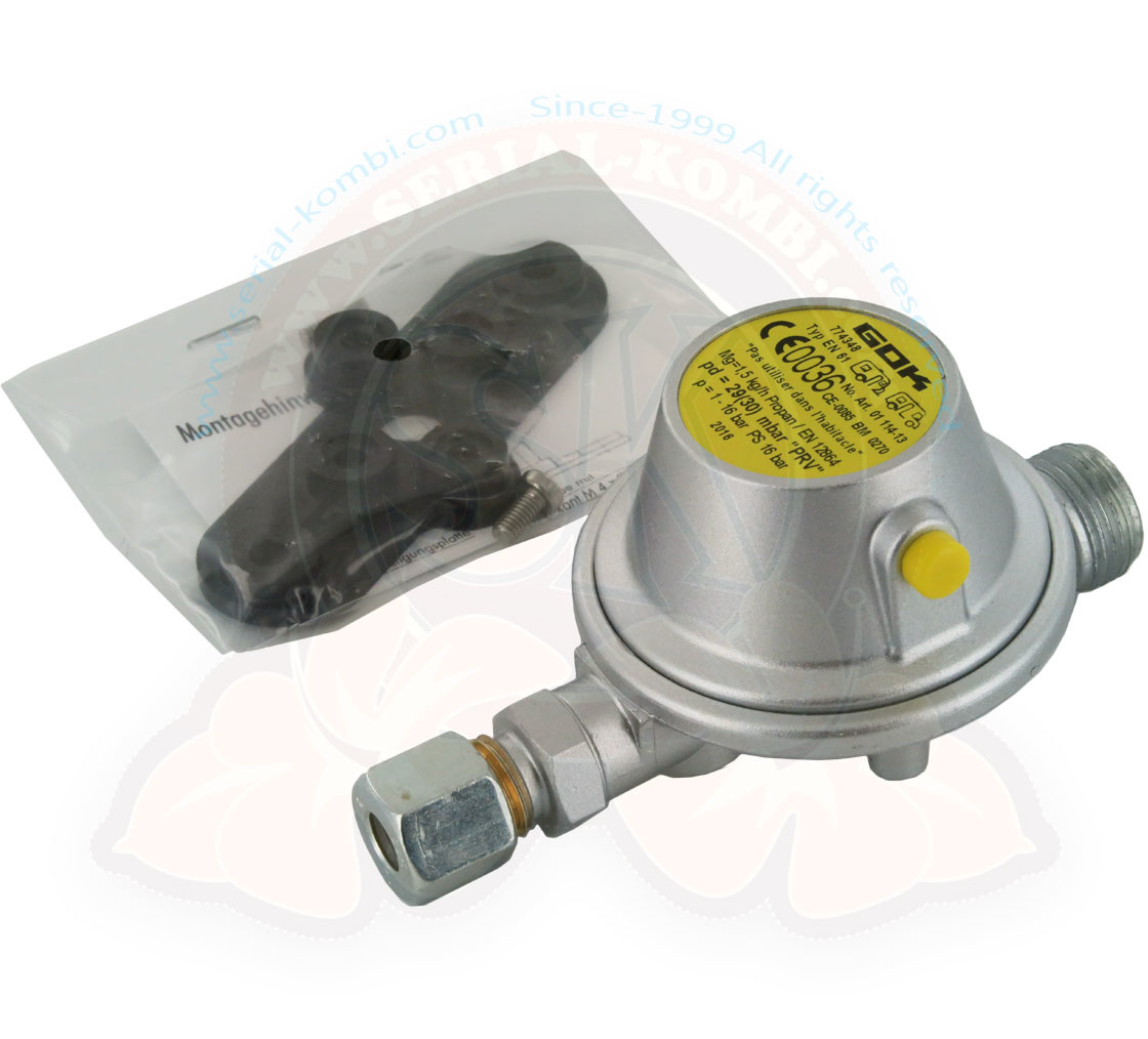 Riduttore di pressione con ingresso filettato maschio 20 x 1,5 con portata 1,2 kg/h. Uscita per dado + oliva Ø 8 mm. Conforme al vecchio standard. NON PUÒ ESSERE INSTALLATO SU VEICOLI PRODOTTI DOPO IL 2000.