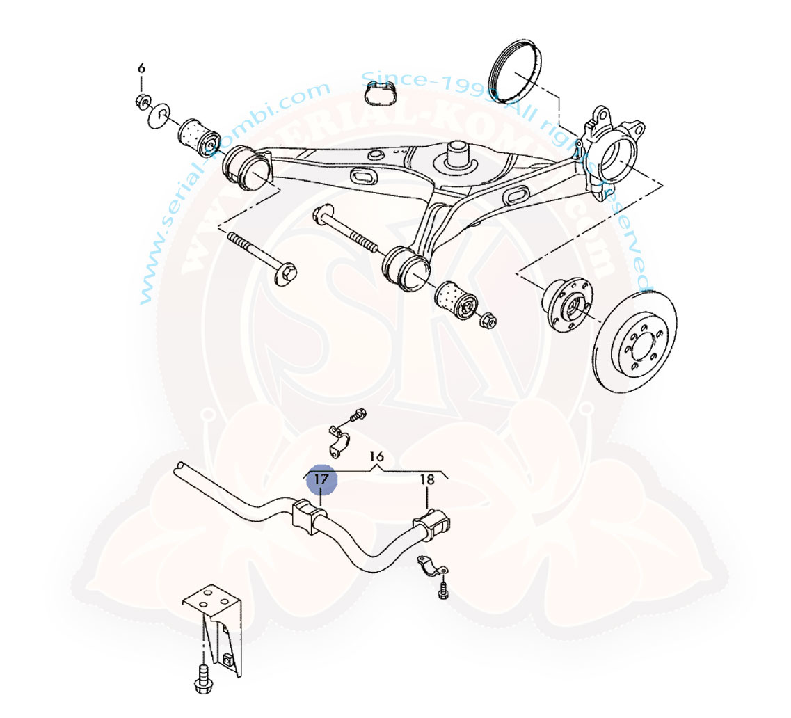 Silentbloc per barra stabilizzatrice posteriore, interno, Ø 23 mm, T5 4/2003-8/2015, T6 9/2015-