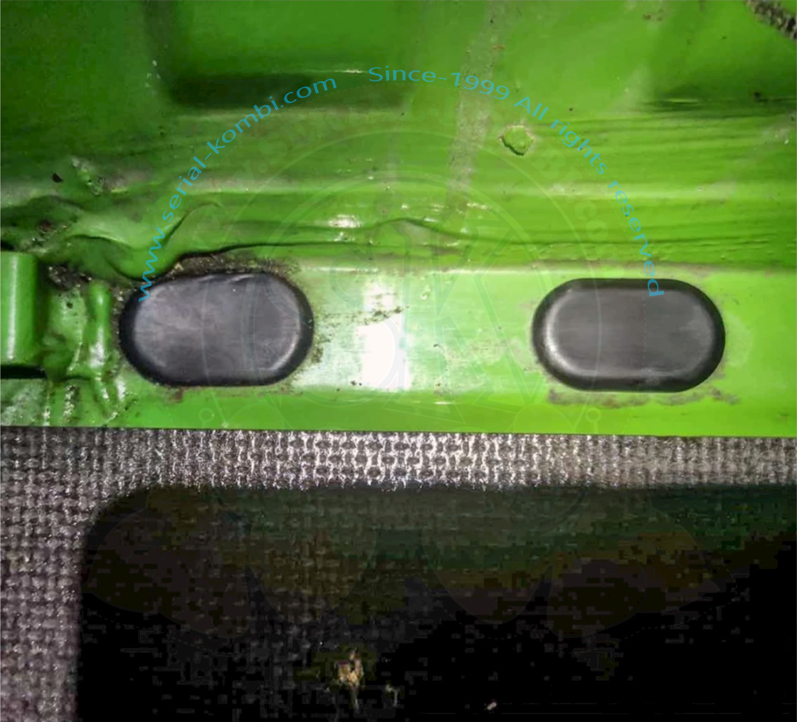 17x32mm. Questi tappi in plastica sono appositamente realizzati e perfettamente adatti al pianale posteriore del VW T25 / T3. Vanno esattamente sopra la traversa e servono a sigillare per bene i fori di drenaggio.