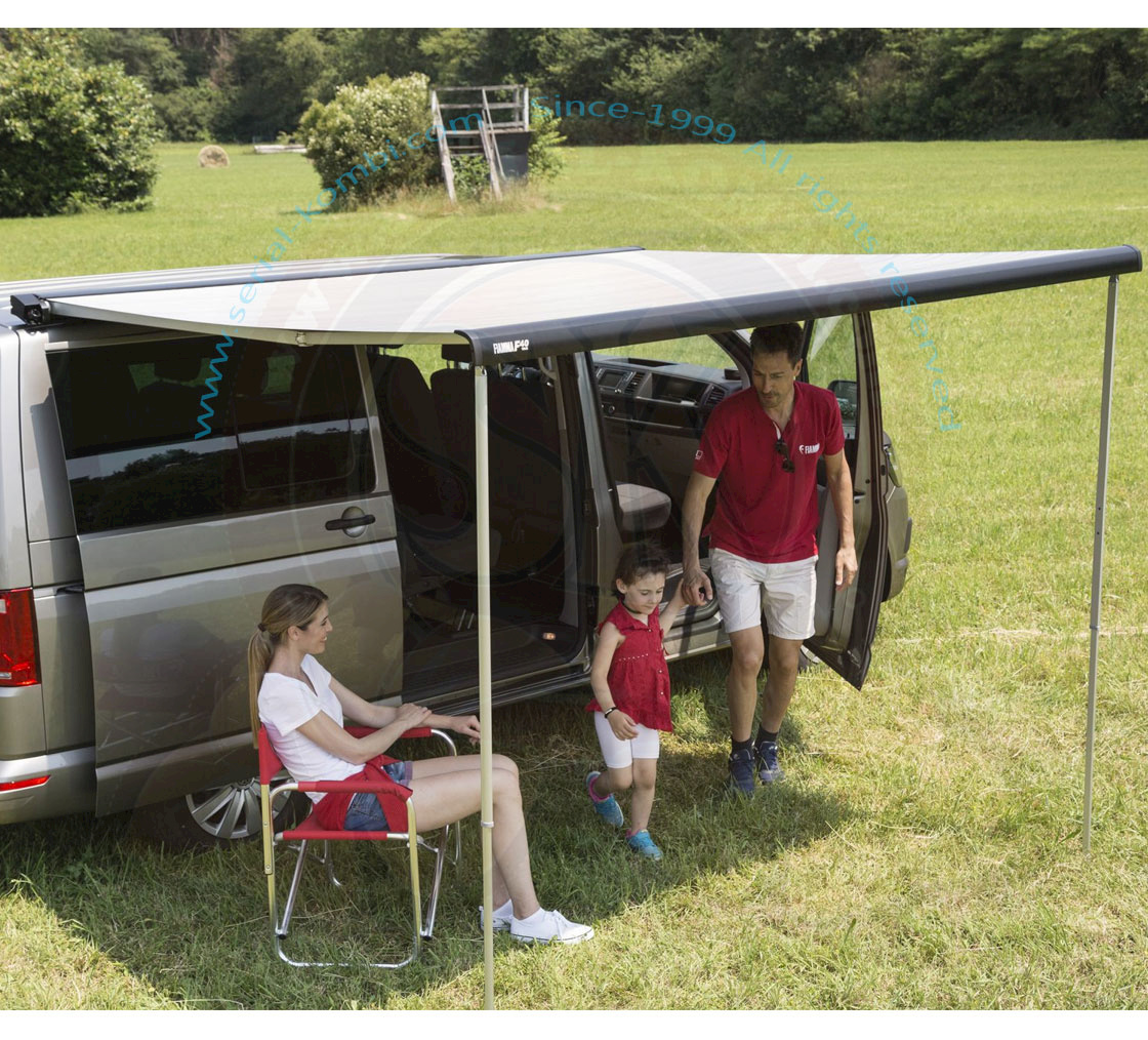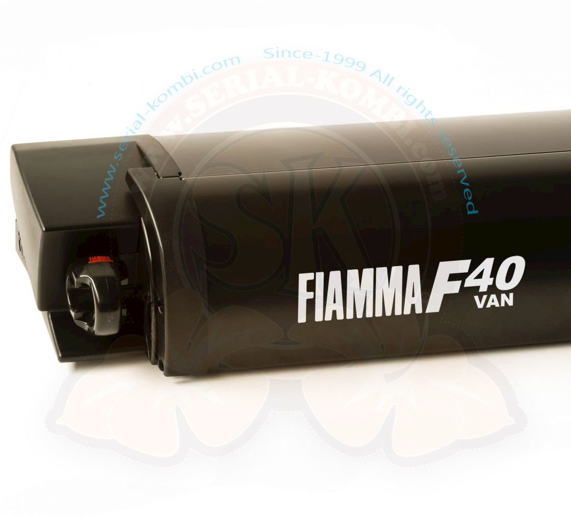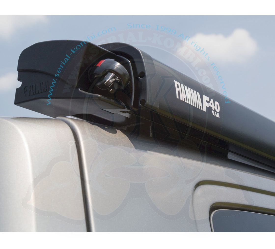 Tendalino ad arganello a tetto store Fiamma F40van 270, Deep Black, telo colore Royal Grey 270x225cm