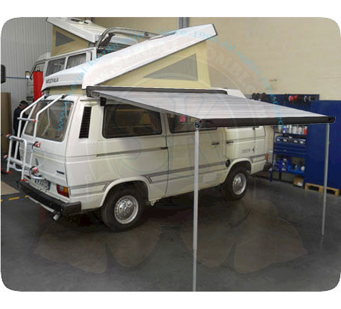 Tendalino parasole ad azionamento manuale, compatto e leggero. Una volta chiuso, la tela resta alloggiata dentro al leggero cassonetto in alluminio anodizzato. Ideale per bus VW, minivan, 4×4 e altri veicoli.