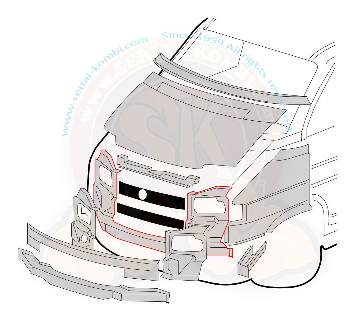 Traversa anteriore con supporti faro T4 10/1991-6/2003 Bus, Transporter (non adatto a Multivan, Caravelle e California con frontale lungo)