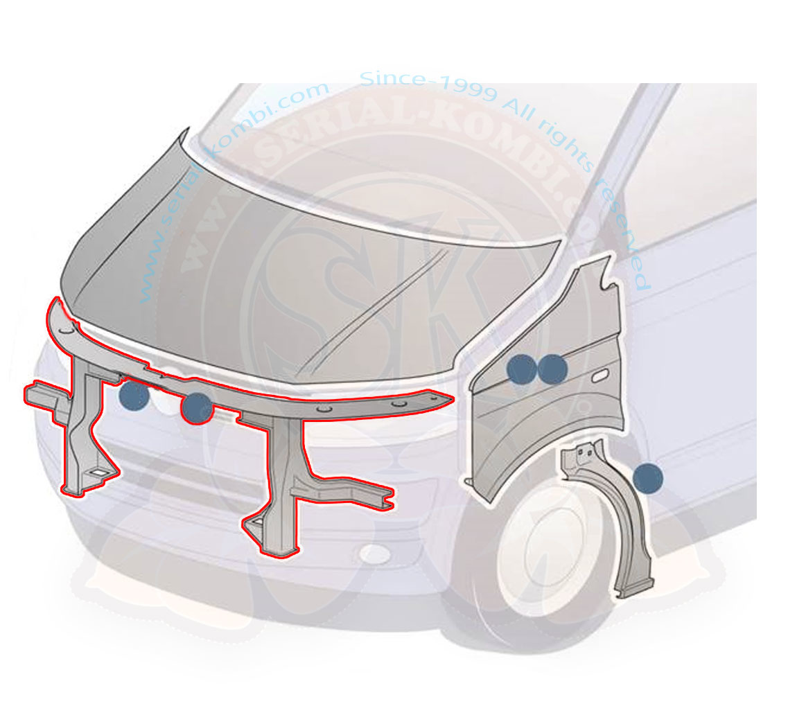 Traversa anteriore con supporti faro T5 12/2009-8/2015