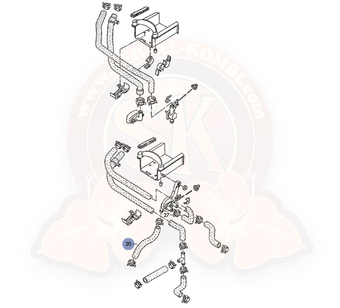 Tubo acqua, ritorno tra valvola riscaldamento e tubo di raccordo, modello con 2° scambiatore di calore T4 9/1990-12/1995 1900cc D / TD