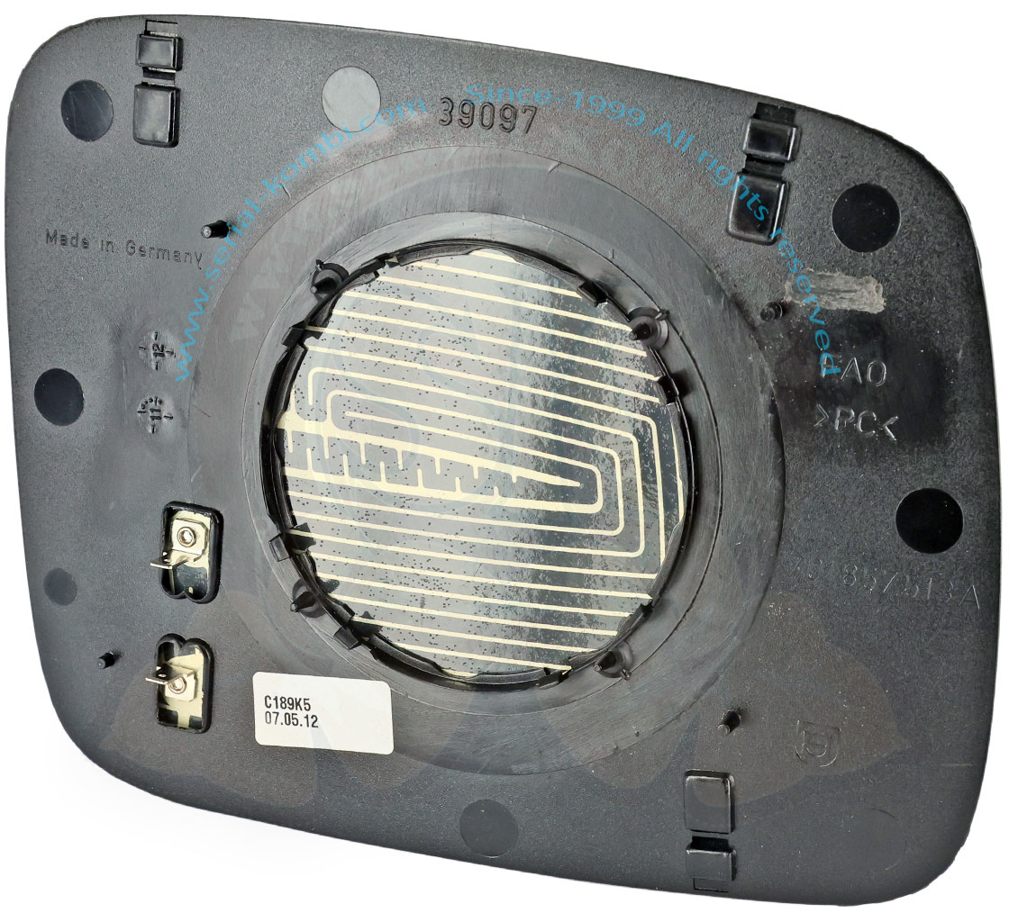 Vetro specchietto sinistro piatto (non convesso), per specchietto elettrico T4 9/1990-6/2003